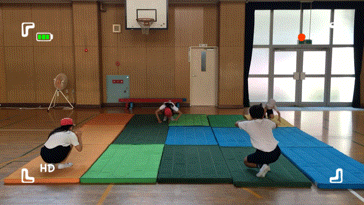今日の体育は、金曜日のグループ演技発表会に向けて、最後の練習をしました。