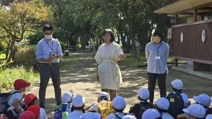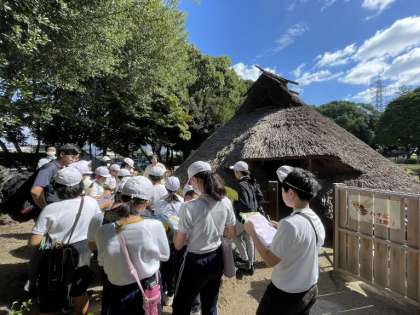 クラス毎に分かれて、遺跡の見学と資料館の見学を進めています。