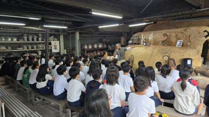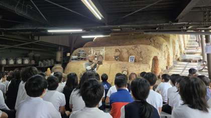 スタッフの方から、信楽焼のお話やのぼり窯の説明、タヌキの置物のもつ意味など、たくさんお話をしていただきました。