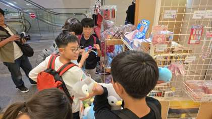 お互いに購入したお土産を見せ合いっこしながら、会話がはずんでいます。