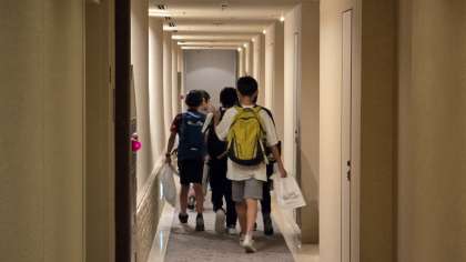 寝具の準備をしたり、荷物の整理をしたりしながら、部屋ごとにのんびり過ごしています。