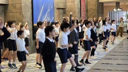 その後、この日のために準備・練習してきた体操を行いました。ジャンボリミッキーの曲に合わせて、元気に体操しました。