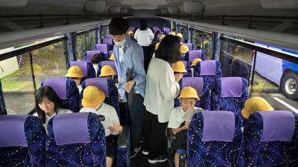 バスの中でチケットを手に取り、先生から説明を聞きました。