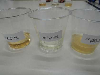 こんぶについてのクイズや、かつおだし、昆布だし、かつおとこんぶの合わせだしを飲み比べたり、昆布で作られた製品を食べ比べたりと楽しく学習することができました。