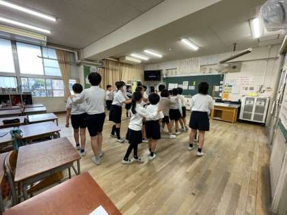 しっぽとり、じゃんけん列車、じゃんけん大会、99のとびら、ドッジボールなど、たてわりで遊びを楽しんでいました。