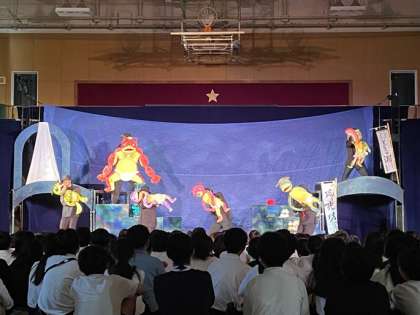 迫力もあり、笑いもあり、音楽もあり、とても楽しい人形劇でした。みんな集中して楽しく鑑賞していました。
