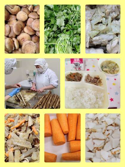 『鶏肉の梅風味焼き』は、梅肉、砂糖、料理酒、こい口しょう油で下味をつけた鶏肉に、玉ねぎを混ぜ合わせ焼いています。『うすくず汁』は、かまぼこ、うすあげ、しいたけ、はくさい、だいこん、みつばを使用し、でん粉でとろみをつけた具だくさんの汁ものです。ごはんがすすむ献立で美味しかったです。