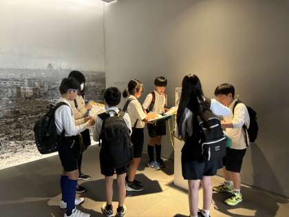 本日は、ピース大阪へ行きました。戦時中の暮らしや歴史について学びました。今自分たちが住んでいるこの町も過去には空襲があった事を知り、改めて平和について考えました。この社会見学を1つのきっかけに、身の回りの平和から大切にできるようになってほしいと思います。