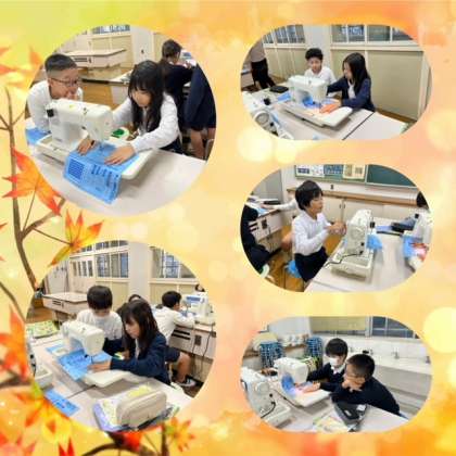 今日の家庭科では、ミシンで返し縫いをしたり、下糸を作ったりしました。