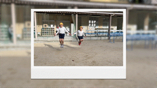 運動場に出てみると、仲良く横並び跳びをしている姿を見つけました。