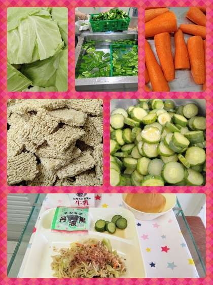 和風焼きそば きゅうりのしょうがづけ きゅうりのしょうがづけ ソフト黒豆 かつおぶし(袋) ミニコッペパン 牛乳