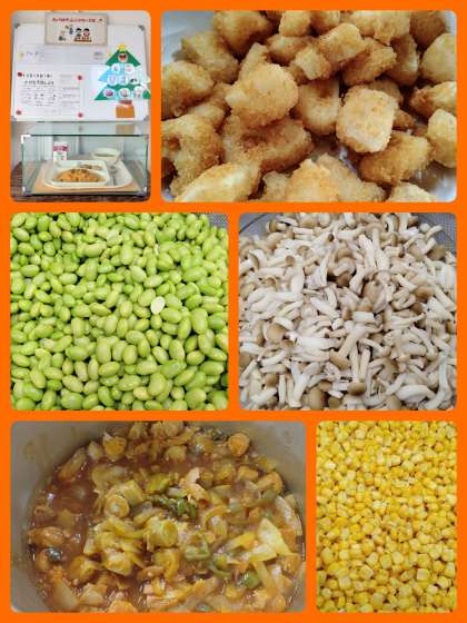 『ケチャップライス』は、ウインナー、ベーコン、玉ねぎ、ピーマンをいため、ケチャップ、ウスターソース、カレー粉などで味つけした具をごはんにかけ、混ぜ合わせて食べます。児童に人気の献立です。『れんこんフライ』は、中はもっちり、ころもはサクサクにあがっていて美味しかったです。今日は、チャレンジデーです。どのクラスも完食めざしてがんばりました。