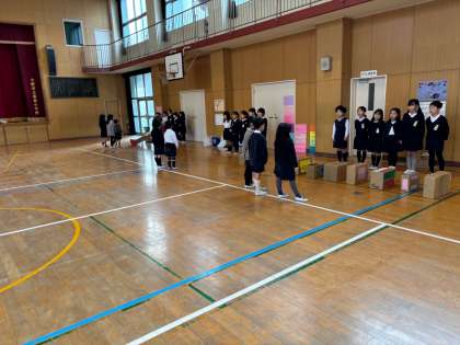 2年生が1年生を招待しておもちゃランドを行いました。おもちゃランド向けて試行錯誤をしながらおもちゃを作ったり、1年生が楽しめるように遊び方のルールを決めたりしました。当日は、1年生に優しく教えてあげる様子も見られました。これからも1年生の見本になれるような2年生になってほしいと思います。