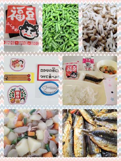 今日は、節分の行事献立です。給食では、『いわしのしょうがじょうゆかけ』と『いり大豆』がでました。料理酒で下味をつけた開きのいわしを焼き、しょうがの風味をきかせたタレをかけています。ごはんによく合う献立で美味しかったです。