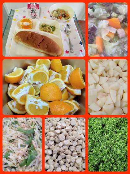 ポトフ カレーソテー いよかん おさつパン 牛乳