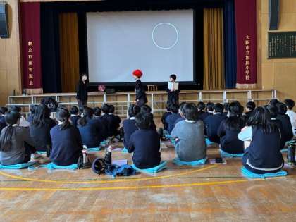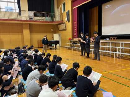 6日(木)に下福島中学校より、生徒会の訪問がありました。中学校生活のきまりの寸劇や部活動紹介の動画などがありました。中学校生活をイメージできる貴重な時間でした。