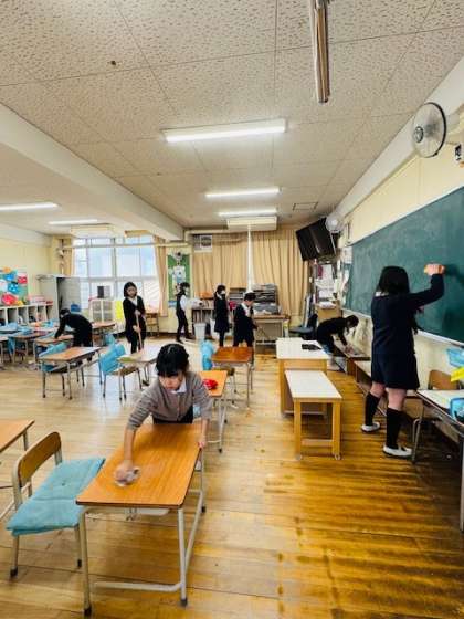 7日(金)、今年度最後の「たてわり清掃」がありました。この1年間リーダーとしてがんばってくれた6年生と掃除をするのも、これが最後でした。どの班も協力して、隅々まで丁寧に、掃除をすることができました。6年生のみなさん1年間ご苦労様でした。