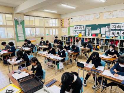 7日(金)に珠算教室がありました。各クラス2時間ずつ教えていただきました。初めてのそろばんに興味津々で、真剣に話を聞いていました。そろばんの仕組みを教えていただき、計算ができるようになりました。たくさん問題を解いてとても楽しそうでした。