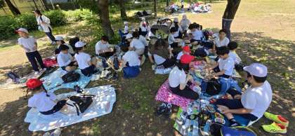 6年生が1年生に優しく関わり、目線を合わせて語りかける姿がたくさん見られました。1年生もそれに元気に応え、みんなで楽しもうとする雰囲気が緑地いっぱいに広がっていました。