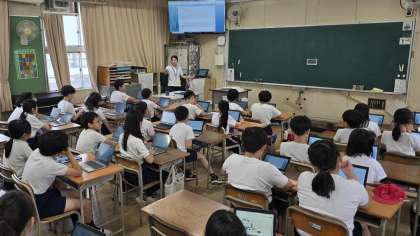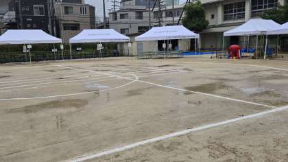 急な天気の変化で朝から雨が降り、玉川小学校の運動場には大きな水たまりがたくさんできました。
