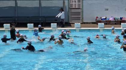 水慣れや水中でのかけっこ、宝探しなどをして楽しく学習することができました。