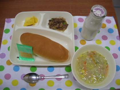 コッペパン(りんごジャム)、牛乳