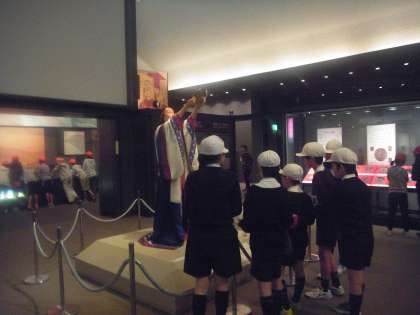 今日(21)、6年生は社会見学で「弥生文化博物館」へ行きました。この博物館には、池上曽根遺跡から出土したたくさんの展示品があります。歴史の学習が始まった6年生にとって、弥生文化について学ぶための貴重な資料を見学することができ、この時期にぴったりの社会見学になったのではないでしょうか。近くに史跡公園もあり、当時の井戸や建物が復元されています。みんな熱心に見学していました。メモする紙が足りなくなるほど記録している児童もいました。