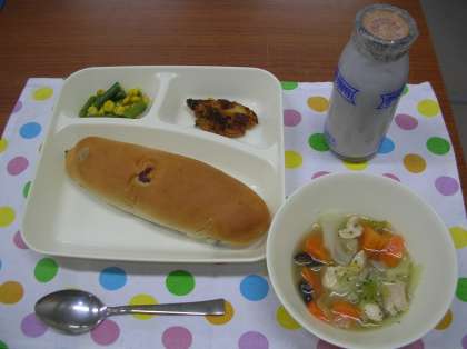 レーズンパン、牛乳
