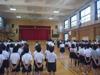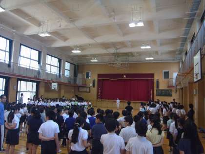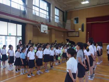 今日(8日)の朝、今年度初めての音楽集会を行いました。今月18日土曜日に行うオリエンテーリングの終わりにみんなで歌う「ドレミの歌」を練習しました。朝でしたが、みんな大きな声で歌えていました。これまで、学級の時間や音楽の時間に練習してきた成果を、どの学年も発揮できていました。笑顔と美しい歌声が、講堂いっぱいに広がる、素敵な時間でした。本番の歌声も、ぜひ楽しみにしていてください。