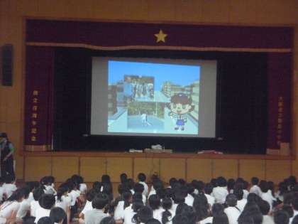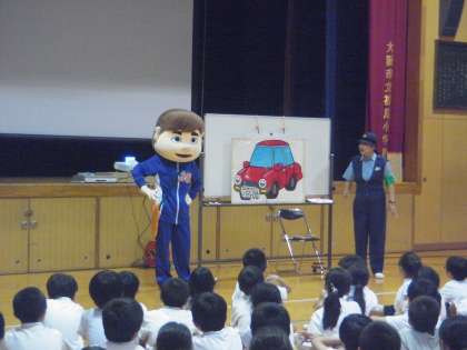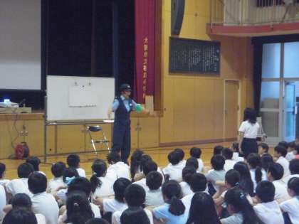 今日(24日)の午後、大阪府警の防犯チーム・福島警察署の皆さんに来ていただき、防犯教室を行いました。日常生活の中で、児童があいやすい犯罪(声かけや連れ去り等)から身を守るための方法について、話をしていただきました。最後は、まとめのDVDを見ました。どの学年の児童にも、わかりやすい内容にしていただきました。府警さんの質問に進んで答えるなど、みんな積極的に参加することができました。今日の学習を、毎日の生活にいかして欲しいと思います。