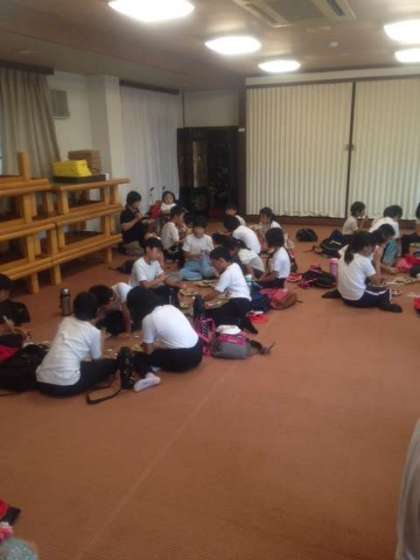 ハチ高原に到着後、しばらくして通り雨。お昼のお弁当は、お部屋の中で食べました。