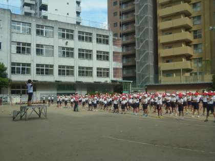 今週から各学年、運動会の練習が始まりました。今朝の集会では、みんなでラジオ体操の練習をしました。ひとつひとつの動きを確かめながら、ゆっくりと進めました。明日も続きをします。まだ、毎日暑い日が続いています。体調を整えて、練習に参加してほしいと思います。