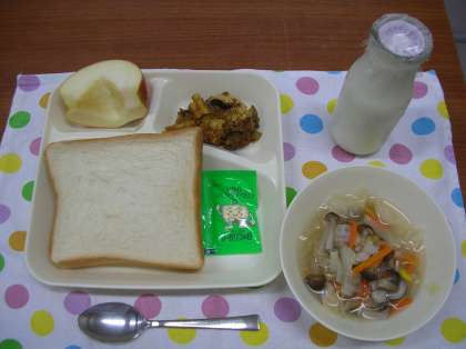 食パン(マーガリン)、牛乳