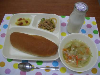 さつまいもは、カリウムや食物せんいがたくさん含まれています。さつまいもを使ったスイートポテトは子ども達は大よろこびで食べていました。売っているスイートポテトより甘みは少ないので、お家でも「おやつ」にもおすすめです。さつまいもの花は「あさがお」によく似た花です。(栄養教諭)