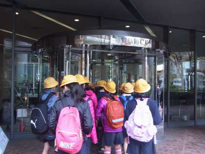 今日(1日)の午後、五年生は毎日新聞本社へ社会見学に行きました。社内のいろいろな場所を見学させていただきました。たくさんの時計に囲まれた部屋で「時間との勝負!」で仕事されている様子を見ることができました。また、地下の印刷工場では、大きな機械がすごいスピードで新聞を印刷・移動・梱包していました。「もうすぐ、今日の夕刊が届けられます。」とのことでした。貴重な体験をさせていただきました。ありがとうございました。