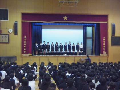 今朝の(9日)児童集会は、運営委員会の発表でした。委員会の役割について、活動の様子を映像で紹介しました。児童会行事のために、企画・運営などをしている様子がよくわかりました。最後に用意されていた「委員会クイズ」も盛り上がっていました。