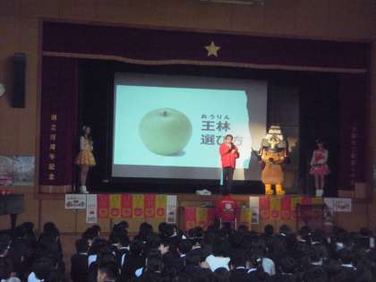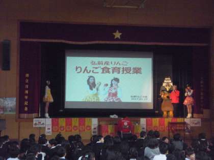 今日の(13日)午後、青森県の弘前市から多くのゲストティーチャーをお迎えし、りんごの出前授業を行いました。「りんご王国」弘前市のこと、りんごができるまでや種類について、おいしいりんごの見分け方など、多くの事を教えていただきました。最後には、りんごのお土産をいただきました。とても楽しい1時間でした。ありがとうございました。