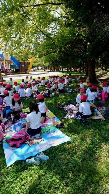 ロケット公園から芝生広場に移動して、お弁当をいただきました。