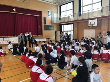 校舎内を見学したあと、本校の5.6年生の児童と交流会をしました。日本の遊びである折り紙やコマ、羽子板やけん玉を紹介しました。香港の子ども達も遊びを紹介してくださり、一緒に遊びました。遊びを通して、互いの国の良さや違いについて学ぶことができました。とても素敵な経験ができました。