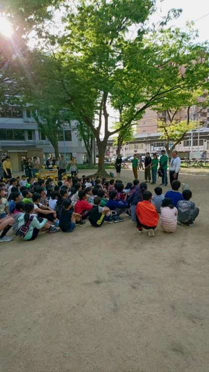 今日の(2日)4時半から、ひまわり公園で、こいのぼりをあげよう会が行われました。福島小の子ども達のほか、地域のみなさんもたくさん集まってくださいました。