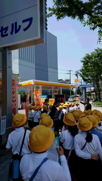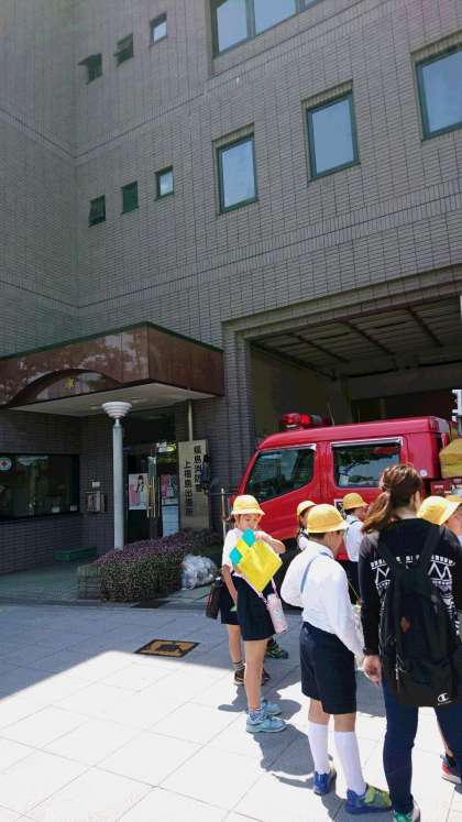 駅、交番、消防署など、いろいろな施設を見て来ました。車や工場、木々などの、(町の音)もしっかり聞いてきました。たくさんの発見ができた、校区たんけんとなりました。
