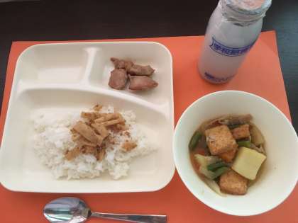 鶏肉のてり焼き じゃがいもとあつあげの煮物 ごまかかいため ごはん 牛乳