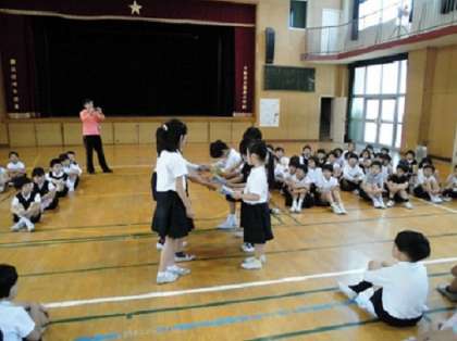 2年生が1年生の手を引いて、校内を案内して回りました。ドキドキわくわくする1年生に、2年生は去年の自分たちを重ねながら、張り切って教室の説明をしていました。班での活動を通じて、楽しく交流することができ、「はじめはちょっと緊張したけど、がんばってよかった。」と、達成感を得ることができました。1年生も笑顔いっぱいに楽しんでいる姿が見られました。