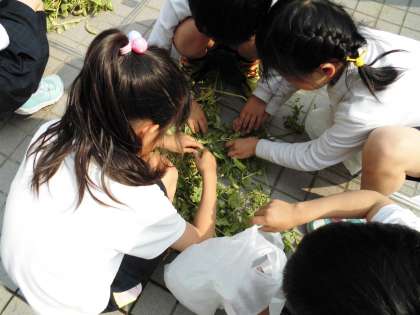 5月11日(木)と12日(金)に,2年生の時に植えたえんどう豆の収穫をしました。最初にえんどう豆の成長について説明していただき,おいしい食べ方のレシピも教えていただきました。