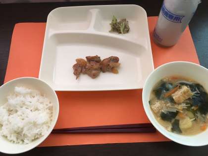 具だくさんのみそ汁と甘辛い鶏肉でごはんもしっかりいただくことができたと思います。