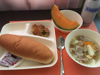 カレードリア キャベツのスープ クインシーメロン 大型コッペパン イチゴジャム 牛乳