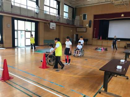 車いす体験、高齢者体験をしました。車いす体験では、ほんの少しの段差でもあがりにくかったです。高齢者体験では、こんなに動きづらいのかと思いました。