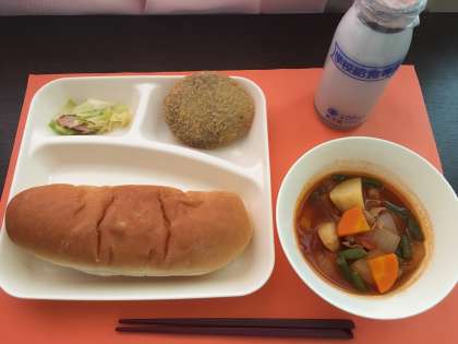 少しカレー風味を効かせた『チキンレバーカツ』は、子どもにレバーを食べてもらうのに絶好の料理のようです。おかわりもジャンケンし、「コロッケみたいでおいしかった!」という声も聞こえました。しっかり食べられたと思います。また今日も暑い中がんばりましょう。