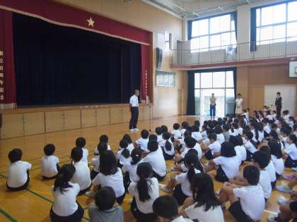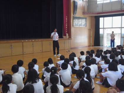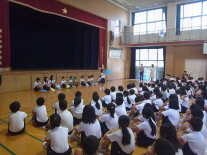 今日(20日)は、1学期の終業式を行いました。最初は、学級代表児童のスピーチです。1学期に頑張ったことや夏休みの予定を話しました。どの学年の児童も、しっかりと準備し、堂々と発表することができていました。その後は、校長先生と生活指導の先生から、夏休みの生活についておはなしがありました。