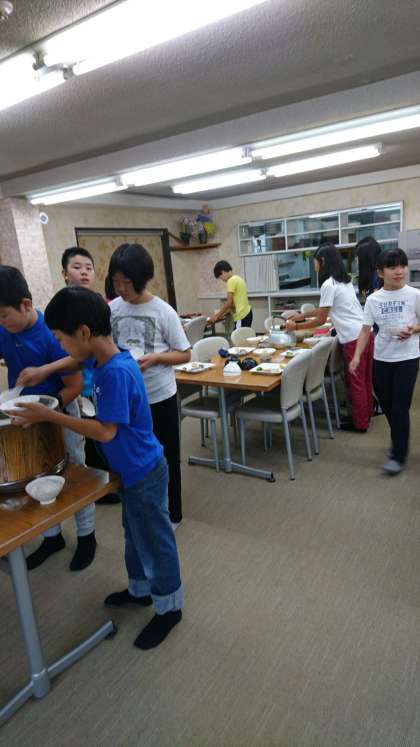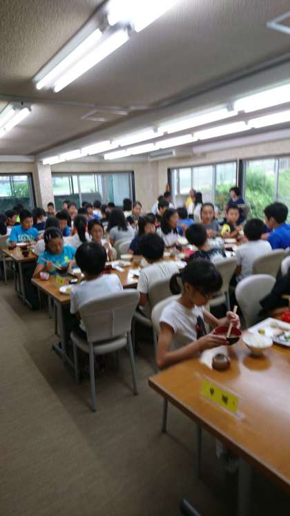 朝食をいただいています。今日は、この後山登りがあります。